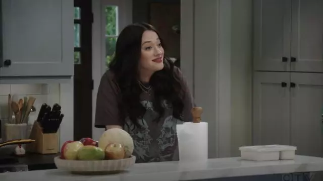 Merch Traffic Metallica Skull Graphic T Shirt worn by Riley Parker (Kat Dennings) as seen in Shifting Gears (S02E01)