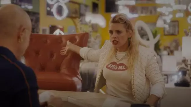 Re/Done 90s Baby Kiss Me Tee worn by Darby (Busy Philipps) as seen in Single Drunk Female (S02E09)