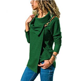 LLYGE Women Turtleneck Sweatshirt Cowl Neck Long Sleeve Button Wrap Pullover Tops Green XL