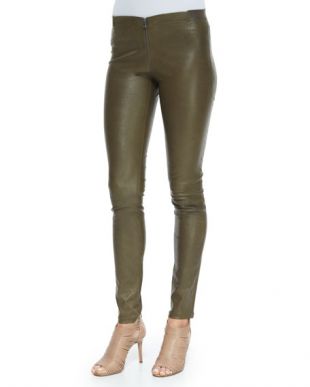Alice + Olivia Lamb Leather Front-Zip Leggings worn by JoJo Fletcher in The Bachelorette (S12E07)