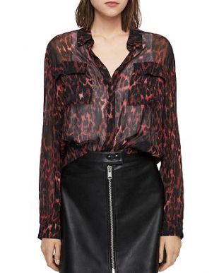 AllSaints red animal print blouse worn by Hannah Brown in The Bachelorette (S15E02)