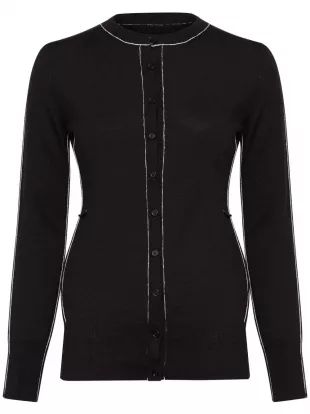 MM6 Maison Margiela Wool-Blend Exposed-Seam Crewneck Cardigan worn by Melody 'Mel' Bayani (Liza Lapira) as seen in The Equalizer (S05E08)