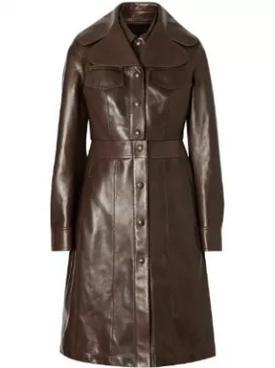 Burberry long leather coat worn by Sharon Carter (Emily VanCamp) as seen in The Falcon And The Winter Soldier TV series outfits (Season 1 Episode 3)