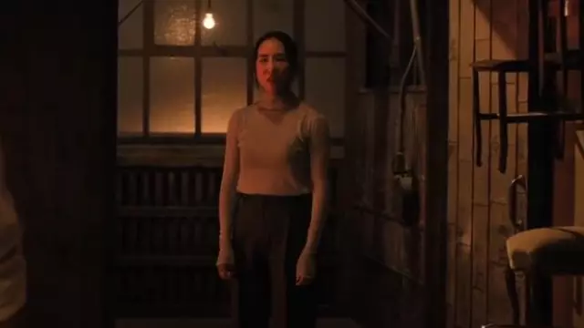 Le17septembre Red Sheer Turtleneck worn by Stella Bak (Greta Lee) as seen in The Morning Show (S04E06)