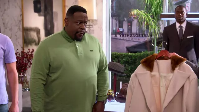 Lacoste green long sleeve polo shirt worn by Calvin (Cedric the Entertainer) as seen in The Neighborhood TV show outfits (Season 4 Episode 9)