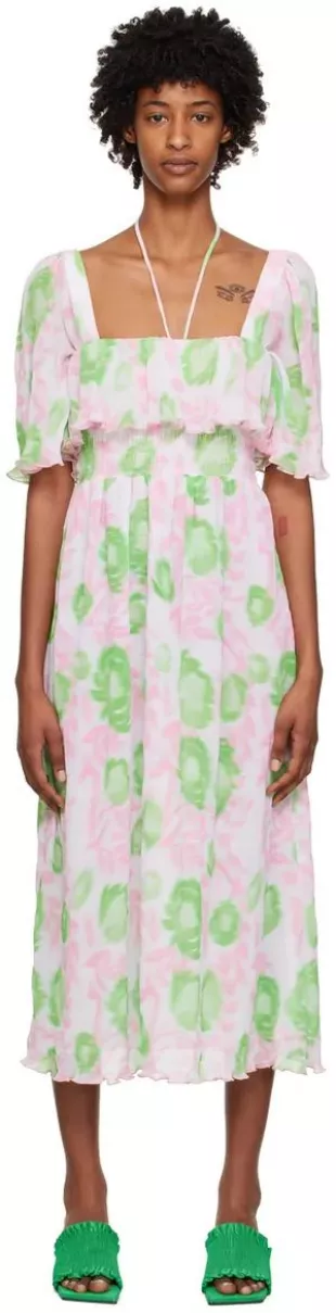 Ganni Pink & Green Smock Midi Dress worn by Abby Winbury (Dakota Fanning) as seen in The Perfect Couple (S01E01)