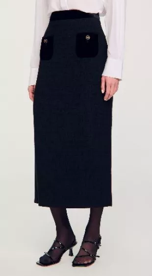 Sandro Tweed And Velvet Maxi Skirt worn by Sarah Plankmore (Madison Iseman) as seen in The Rainmaker (S01E08)