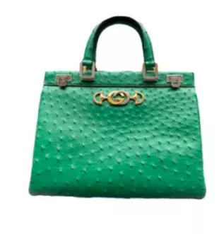 Gucci Zumi Ostrich Handbag Green In Ostrich worn by Ubah Hassan as seen in The Real Housewives of New York City (S15E06)