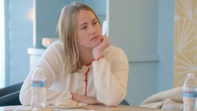 Asos Design White Red Contrast Trim Cardigan worn by Whitney Leavitt as seen in The Secret Lives of Mormon Wives (S02E05)