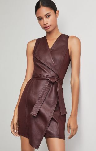 Bcbgmaxazria Burgundy Leather Wrap Dress worn by Chelsea Newman (Melissa Claire Egan) as seen on The Young and the Restless April 14, 2020