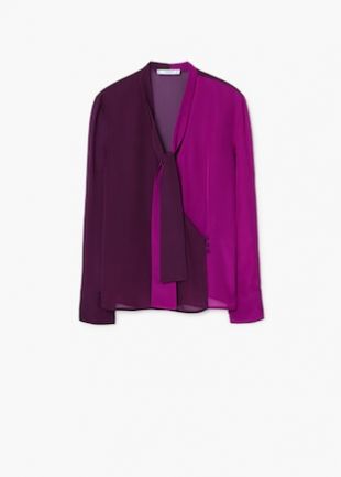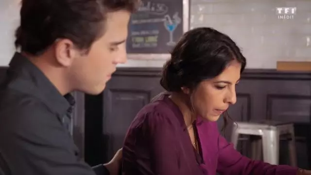 The blouse violet bicolor Soraya (Kenza Saib Couton) in Tomorrow belongs to us S01E311