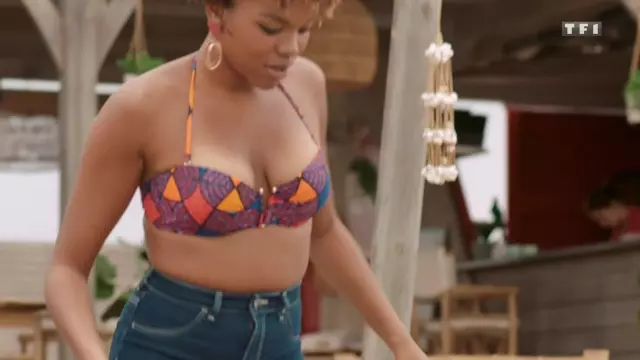 Swimsuit 2 parts bikini with geometric patterns worn by Jenny Mendoza (Chanel Victor) in Tomorrow belongs to us
