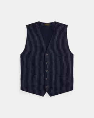 Ralph Lauren Indigo Twill Vest worn by Jeremiah Dunmire (Robert Patrick) as seen in Tulsa King (S03E02)