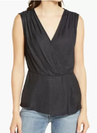 Chelsea28 Houndstooth Satin Drape Top worn by Kate Foster (Catherine Reitman) as seen in Workin' Moms (S06E13)