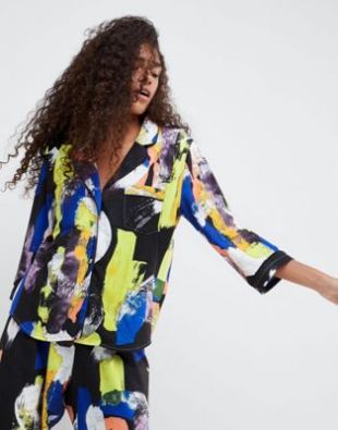 The pyjama set (shirt and pants) patterned pictorial of Zoella (Zoe Suggested) in his video "Best Friend Does My ASOS Shop"