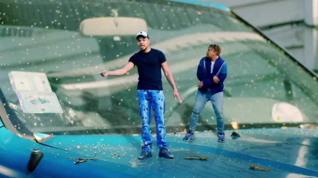 Levi's® X Disney Mickey Mouse Light Blue 501® Original Fit Men's Jeans of Chance The Rapper in the YouTube video YBN Cordae - Bad Idea (feat. Chance The Rapper) [Official Video]