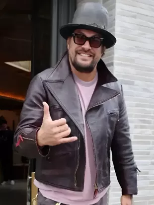 Jason Momoa Masterclass 2025 Leather Jacket in Jason Momoa Crashes Newlyweds' Wedding Photo Shoot