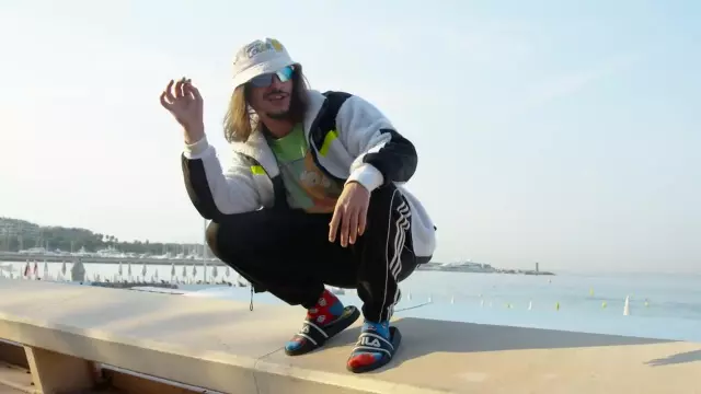 The pair of socks (envelopes feet) of Lorenzo in his clip Champagne & Pétou feat. Charles Viscount