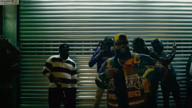 Mitchell & Sess Los Angeles Lakers Gold & Purple Colorblock Snapback worn by Rick Ross in Lyrical Eazy with Meek Mill (Official Music Video)