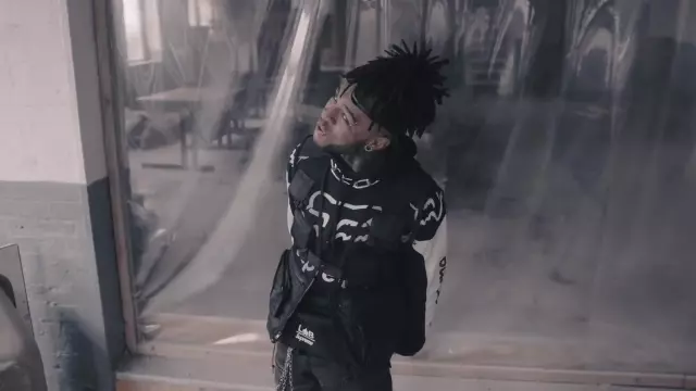 The jack­et tac­ti­cal worn by Scar­lxrd in his clip HEAD GXNE.