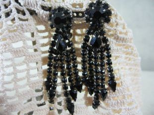 Drop boucles d’oreilles strass noir Weiss Vintage signé Weiss bijoux glamour hollywoodien des années 1950 broches Cocktail Set spécial événement d’instruction