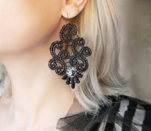 Dentelle noire Art Nouveau grand pendantes boucles d’oreilles boucles d’oreilles grand lustre strass argent bijoux floral Sexy cadeau pour elle