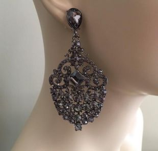 Les boucles d’oreilles strass gris cristal strass longue boucles d’oreilles diamant noir foncé gris argent bronze style de lustre mère si la mariée