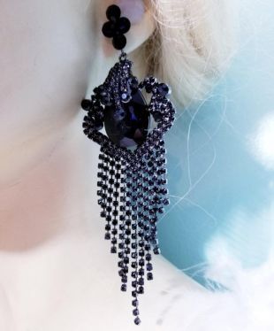 Énorme Drag Queen noir strass Chandelier boucles d’oreilles de mariée bal Pageant 4.9 pouces
