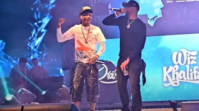 Martine Rose Dover Street Market White & Grey Camo T-Shirt worn by Wiz Khalifa in Wiz Khalifa - So Many Pounds Freestyle [Official Music Video]