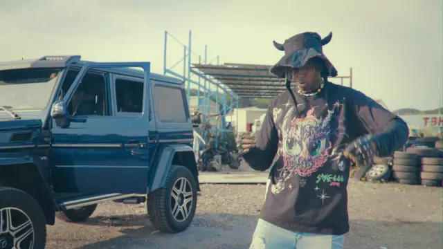 The cap Guc­ci worn by Youv Dee in the clip Berry