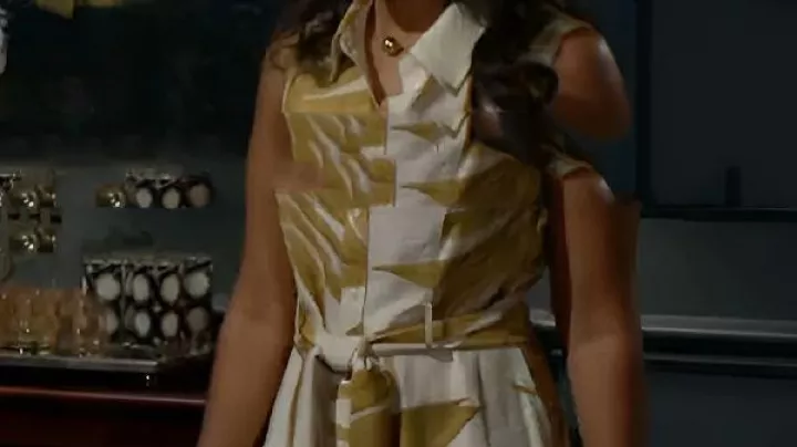 El vestido a rayas multicolor usado por la Secretaria del Caballo Oscuro en la serie The Fires of Love (S46E115)Proponer un productoPropuesto por Carmina