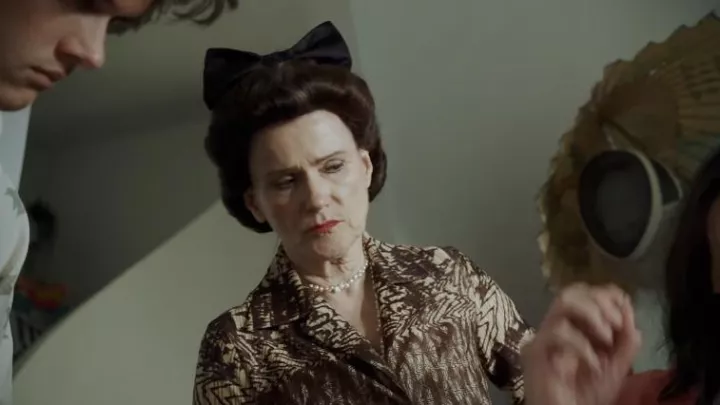 Collar de perlas rojas y blancas usado por el joven Dalí (Ezra Miller) visto en DalílandProponer un productowanted