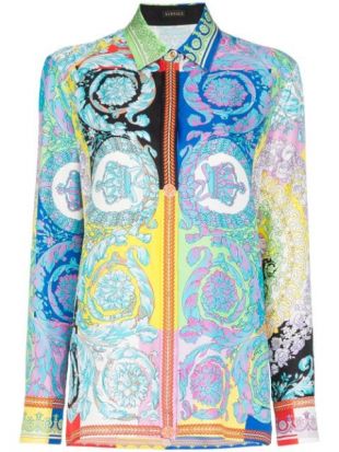 La camisa de seda floral Versace de Bebe Rexha en su cuenta de Instagram @beberexha