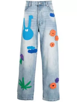 Nahmias Light Blue Crochet Flower Jeans usados por Chris Brown en la cuenta de Instagram de @chrisbrownofficial