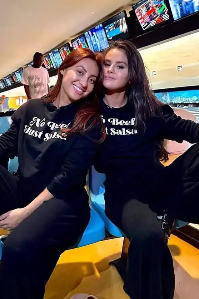 Outfits de Selena Gomez: No Beef Just Salsa Sudadera usada en una selfie en Instagram con Francia Raisa