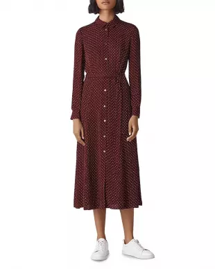 Vestido camisero Whistles Margot Spot usado por Kate Middleton en Southport el 10 de octubre de 2024