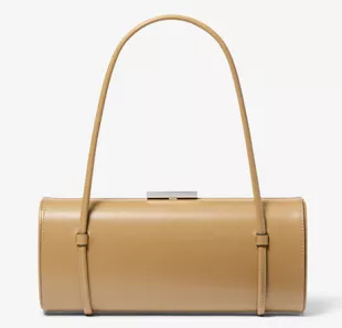 Bolso barril de cuero Natalie de la colección Michael Kors en cuero liso usado por Kerry Washington en The Six Triple Eight Press el 15 de diciembre de 2024