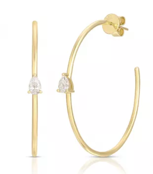 Anita Ko Large Hoops with Pear Diamond Center usada por Selena Gomez en su historia de Instagram el 15 de agosto de 2023
