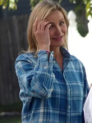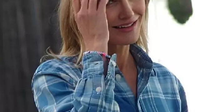 Camisa a cuadros azul de Bad Day Cameron Diaz NJ usada por (Cameron Diaz) en Bad Day