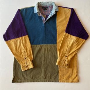 vintage New River Renaissance Color Block Corduory Long Sleeve Denim Collar Tee