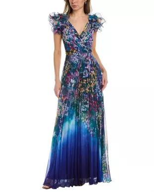 Ruffle Tiered Puff Sleeve Aline Gown 14 Berry Sheer Pleated 68198