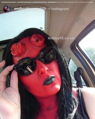 hellboy fantasy charcater makeup shaven horn prosthetics red latex