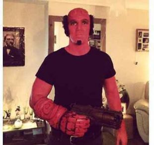 Más­cara de ca­beza de Hell­boy usada por Da­vid Har­bour como se ve en Hell­boy