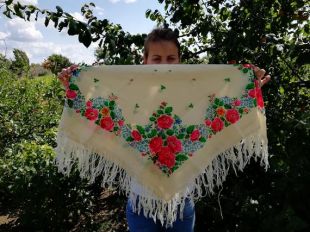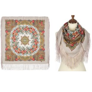 Châle de châle de laine florale russe beige pour femmes, Pavlovo Posad écharpe carrée envelopper taille 35'' Babushka style style piano châle avec frange