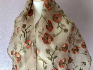 Soie brodée floral châle beige melon vert perlé mariage fiançailles robe élégante 88 "long x 19.5" large frange