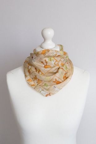 Foulard carré Vintage, animal imprimé foulard en soie, écharpe ancienne, femmes foulard châle 50cm/20 "éléphant or vert orange poisson personnes