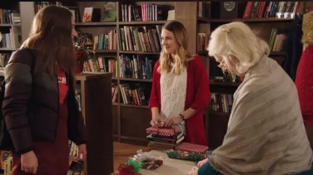 El Cárdigan Rojo de Claire (Alexandra Breckenridge) en El libro de Navidad