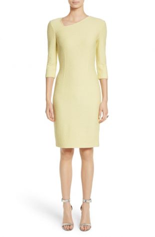 St. John Collection Vestido de vaina asimétrica de punto usado por Gayle King en CBS This Morning 23 de octubre de 2019