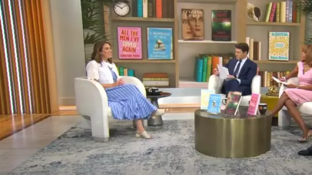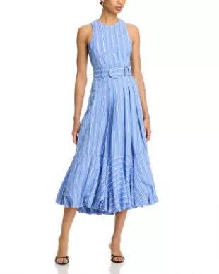 Cinq à Sept Hailey Directional Stripe Vestido sin mangas usado por Sarah Gelman como se vio en CBS Mornings el 16 de julio de 2025