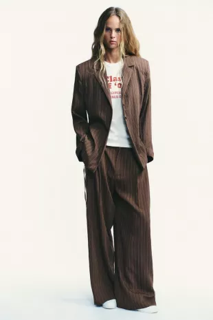 Pantalones de solapa de doble pliegue de Zara usados por Shanelle Kaul como se ve en CBS Mornings el 28 de septiembre de 2025